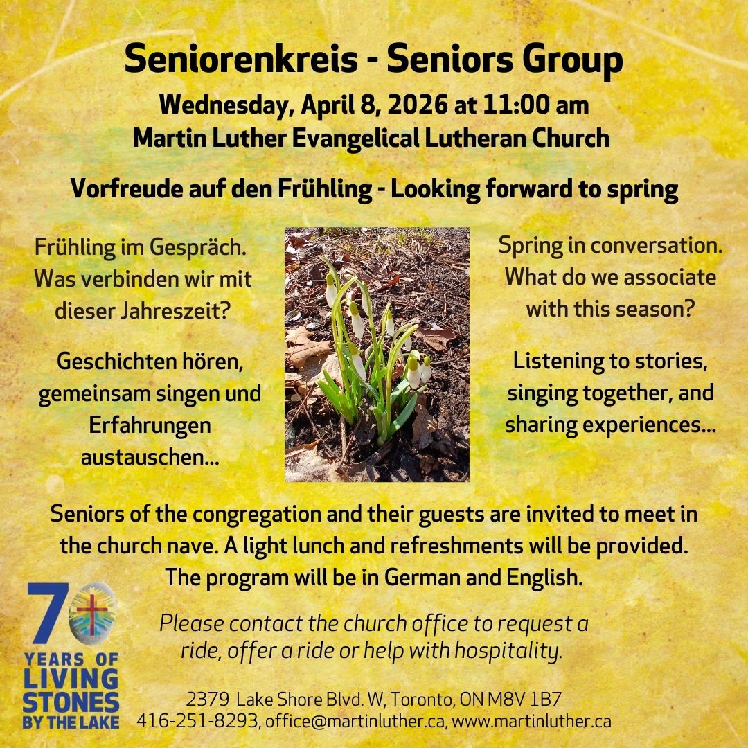 Contact the office: 416-251-8293 or office@martinluther.ca if you need a ride or can offer one!