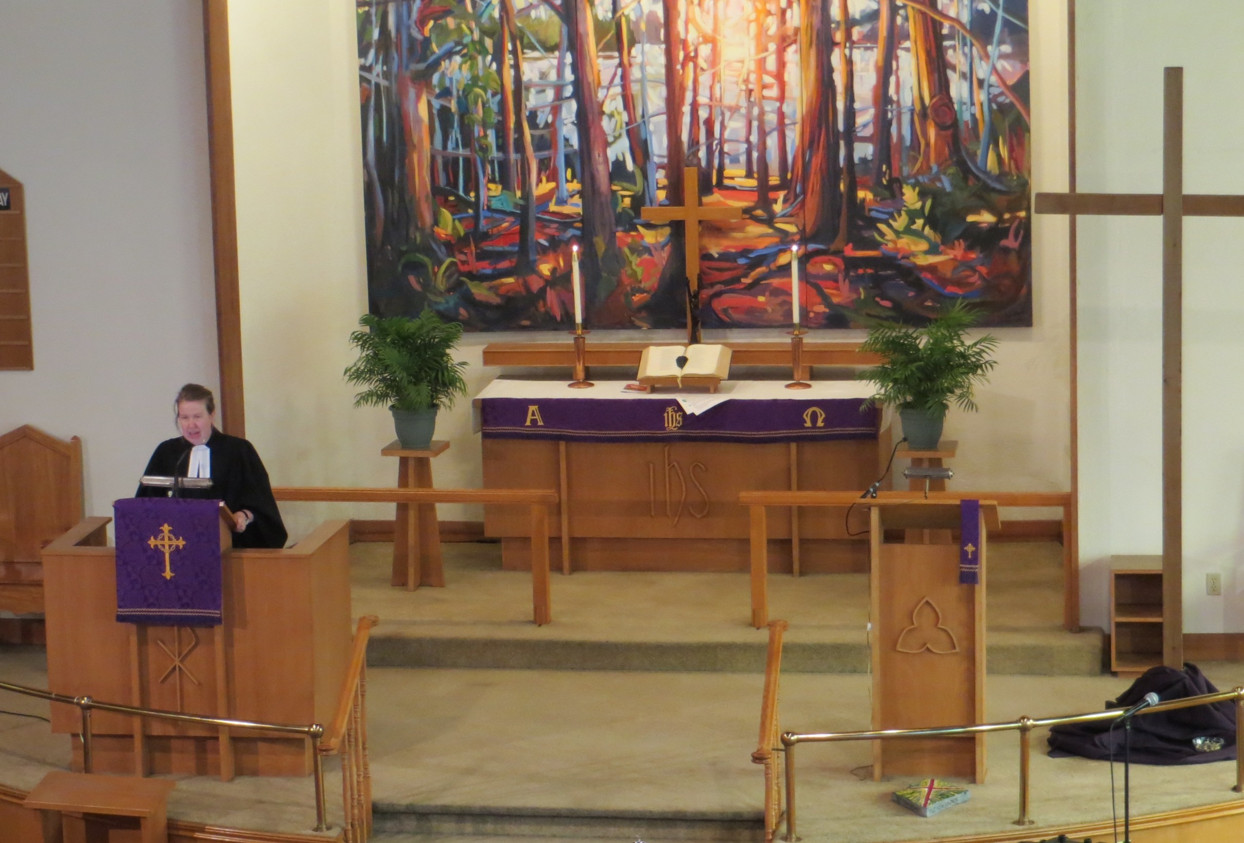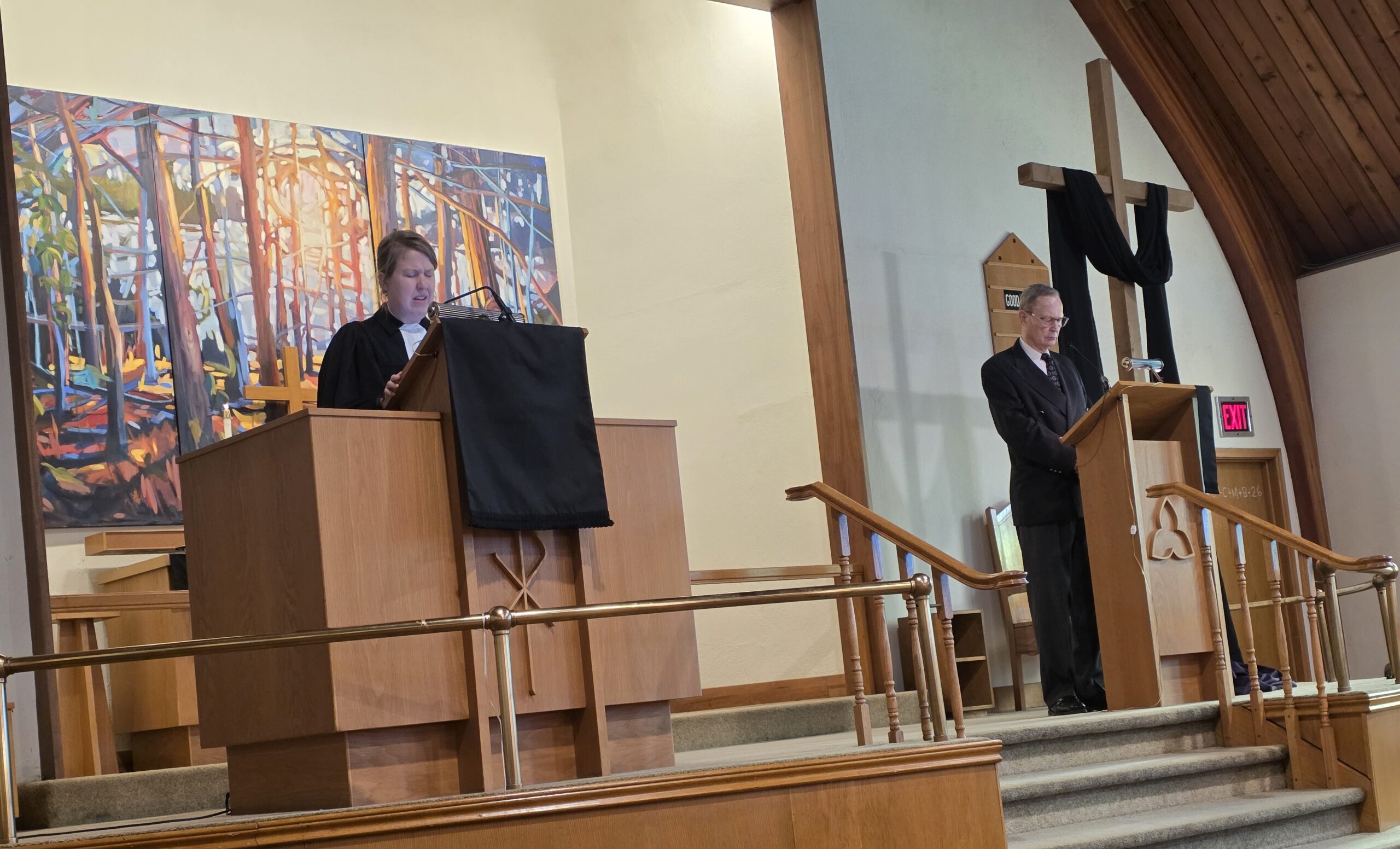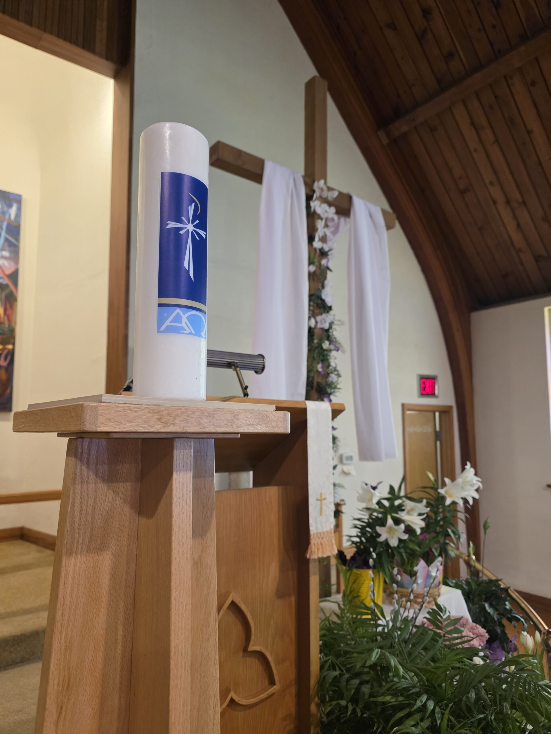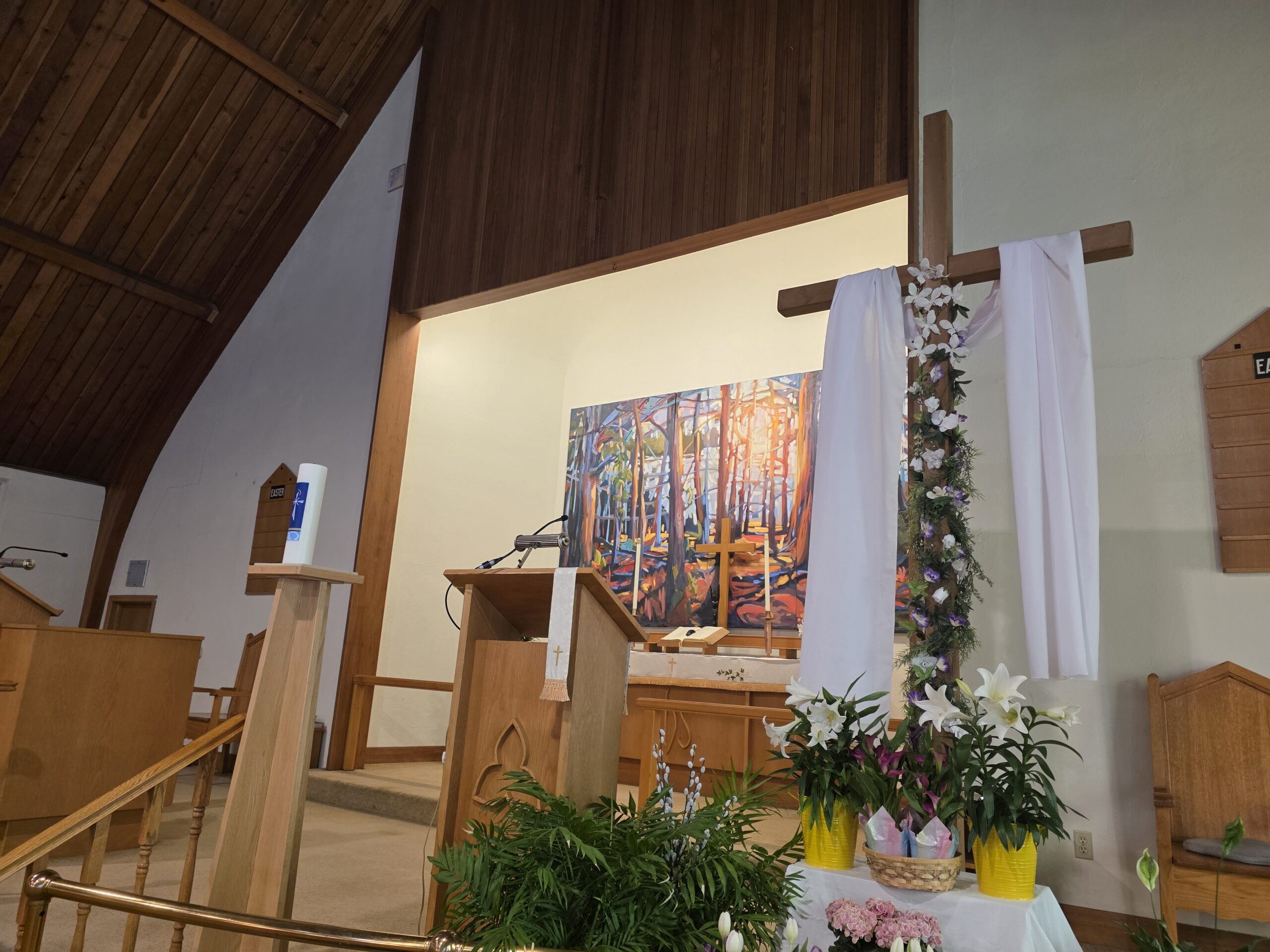 Pastor Annika Klappert led an inspiring Palm Sunday service on March 29, 2026 to mark the beginning of Holy Week. Our church choir performed “Palmsonntagslied” under the direction of Linda Marcinkus as part of the prelude during the procession of this year’s church council into the church. The choir also sang “Jerusalem”. Some of those in attendance also participated in the service by reading the Gospel and Prayers of Intercession, as well as helping with Holy Communion. In the sermon Pastor Klappert connected the Gospel to her vision of the congregation as she sees it represented in the altar art.