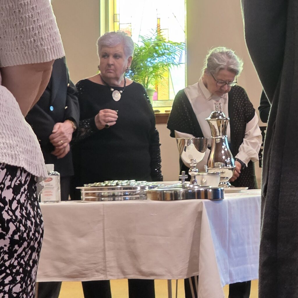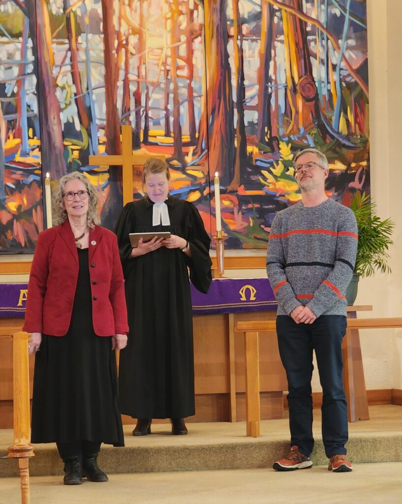 She dismissed and blessed outgoing council members Mona Frantzke and Kai Herrmann (who continues in the role of Treasurer). She installed our 2026-2027 church council members: Jocelyn Sommerfeld as President, Monika Schmidt and Sonja Schweiger as Vice-Presidents, Tanya Zielke as Secretary, members at large: Greg Andre-Barrett, Andy Boettcher and Gisela Wilhelm. Philippe Daniel Koo Tze Mew joined the council but was not able to attend the installation. After the service, we enjoyed treats provided by Pastor Klappert and her husband Tim to celebrate our church council. We thank everyone who pitched in to help serve and clean up. We also launched our food drive which continues during Holy Week and Easter in support of our community food pantry and the Wesley Mimico United Church Food Bank. Please continue to bring non-perishable food and toiletries and make financial donations to support our food ministry.