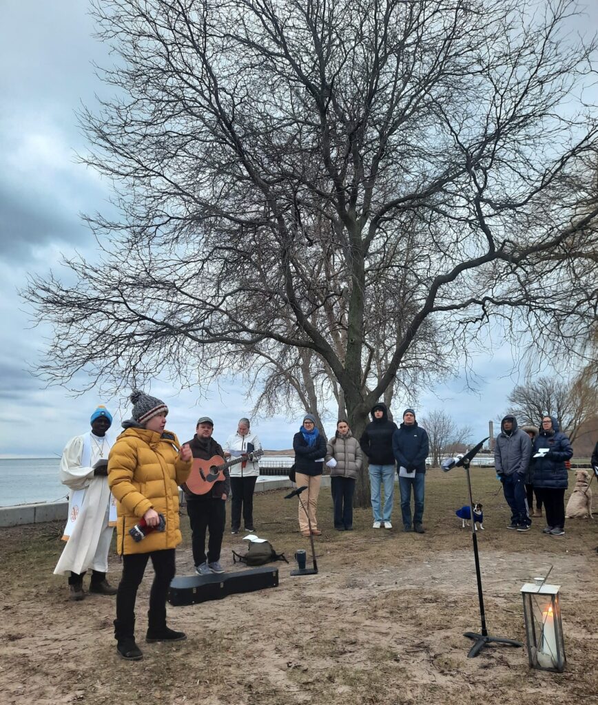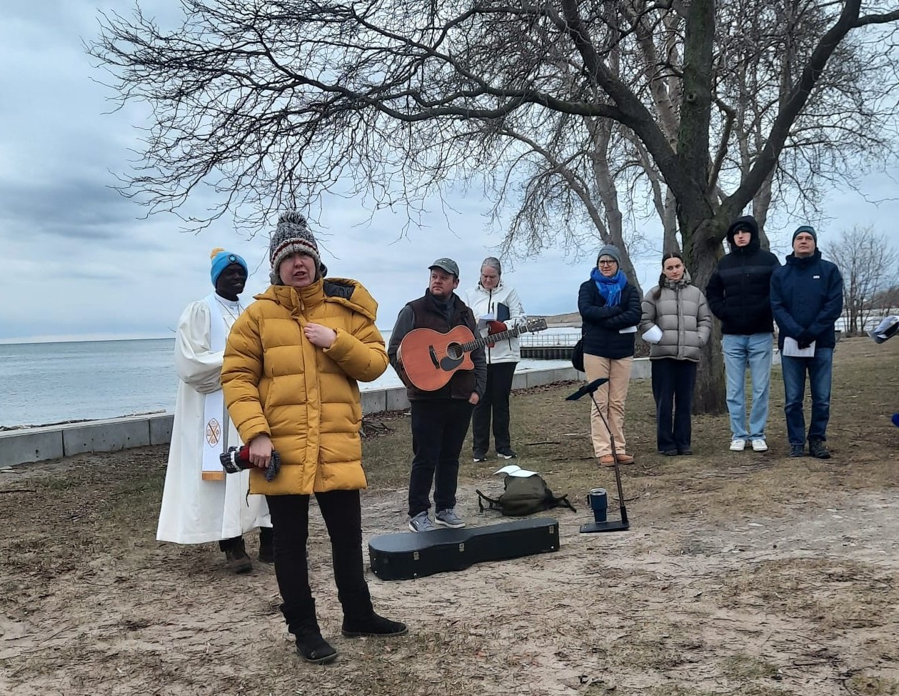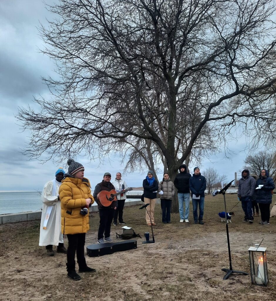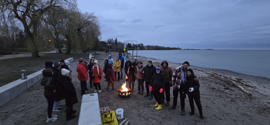 On April 5, 2026, we celebrated the risen Christ at 7:00 am during an Easter Sunrise Service at Marie Curtis Park, together with members of Alderwood United Church and other surrounding churches. Approximately 65 people gathered on the beach around the Easter Candle to sing hymns, affirm their baptism, and hear the good news! Thank you to those who came early to set up the fire that provided warmth before the service.