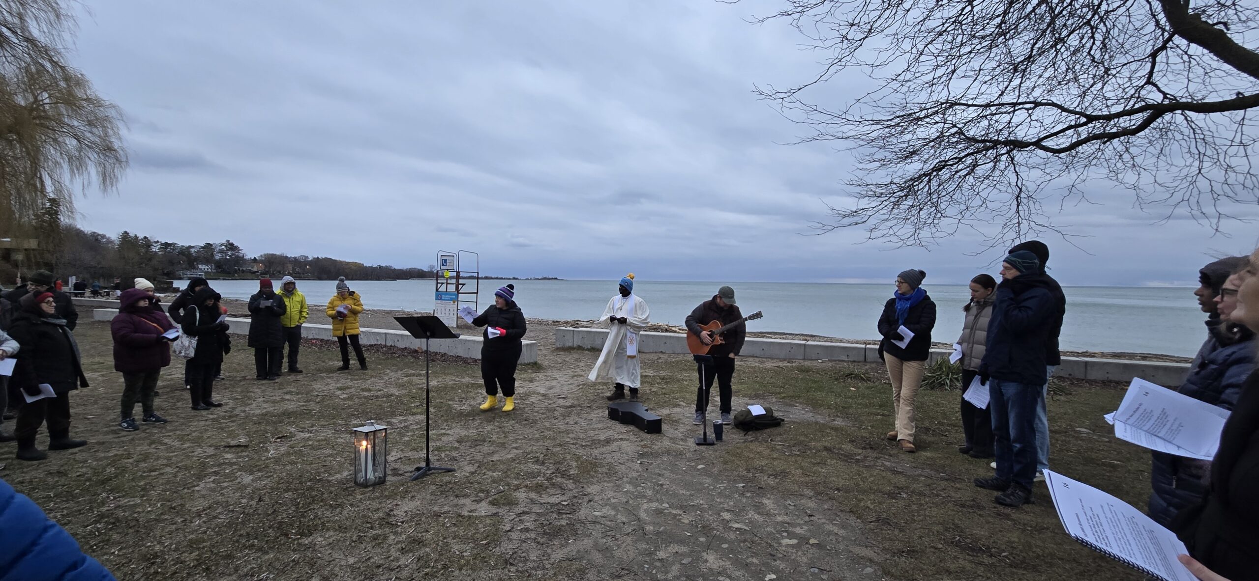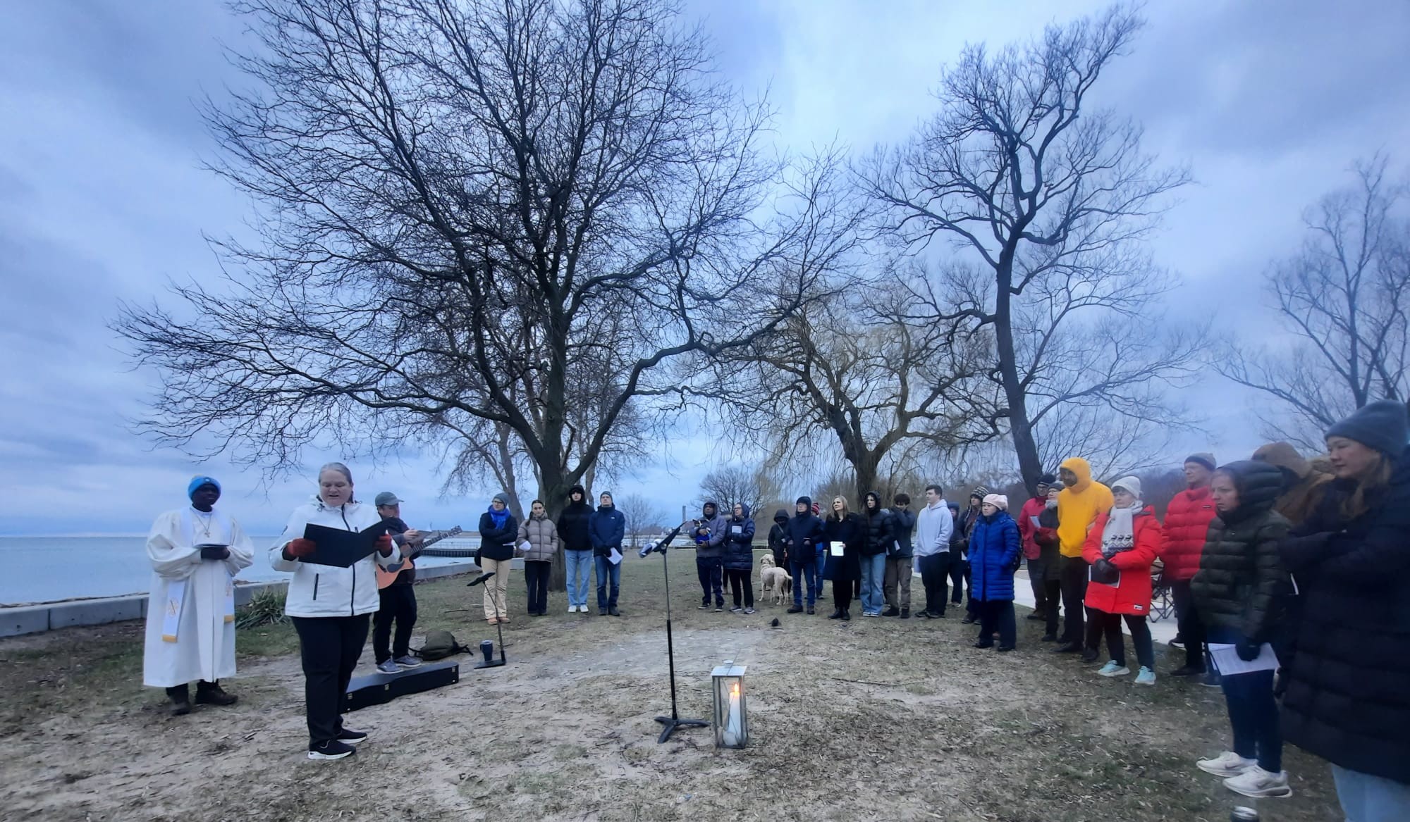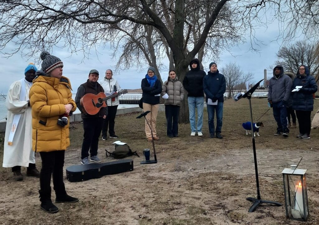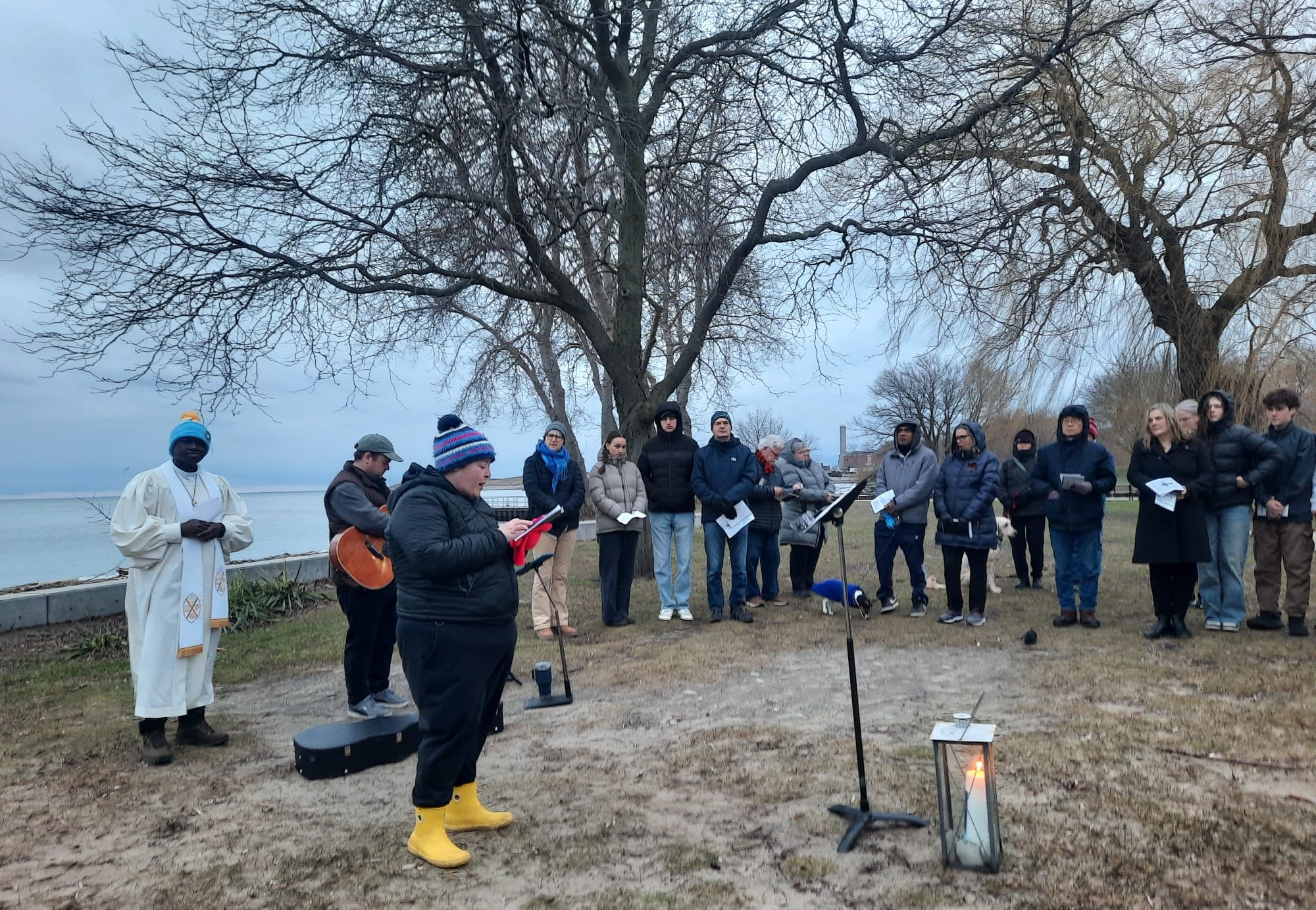 On April 5, 2026, we celebrated the risen Christ at 7:00 am during an Easter Sunrise Service at Marie Curtis Park, together with members of Alderwood United Church and other surrounding churches. Approximately 65 people gathered on the beach around the Easter Candle to sing hymns, affirm their baptism, and hear the good news! Thank you to those who came early to set up the fire that provided warmth before the service.