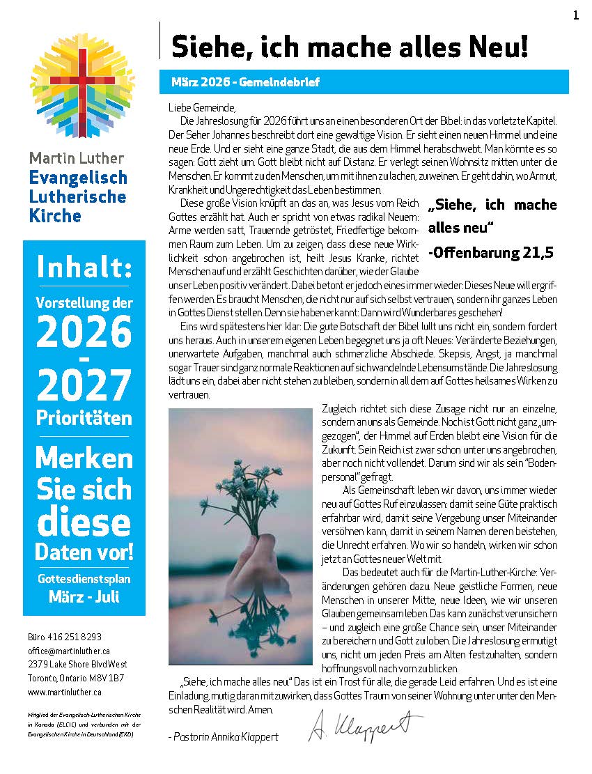 Palmsonntag und Instalation des Vorstandes Pastorin Annika Klappert leitete am 29. März 2026 einen inspirierenden Palmsonntagsgottesdienst zum Auftakt der Karwoche. Unser Kirchenchor sang unter der Leitung von Linda Marcinkus das „Palmsonntagslied“ als Teil des Vorspiels während des Einzugs des diesjährigen…