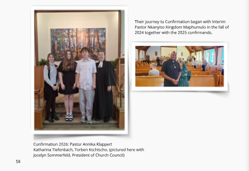 Our Confirmations Over the Years – Unsere Konfirmationen über die Jahre, 1956 – 2025. Martin Luther Evangelical Lutheran Church. Edited by Gisela Wilhelm and Mona Frantzke, with design assistance from Leanne Grammenz. Printed by Photobook Canada, November 2025. 60 pages.